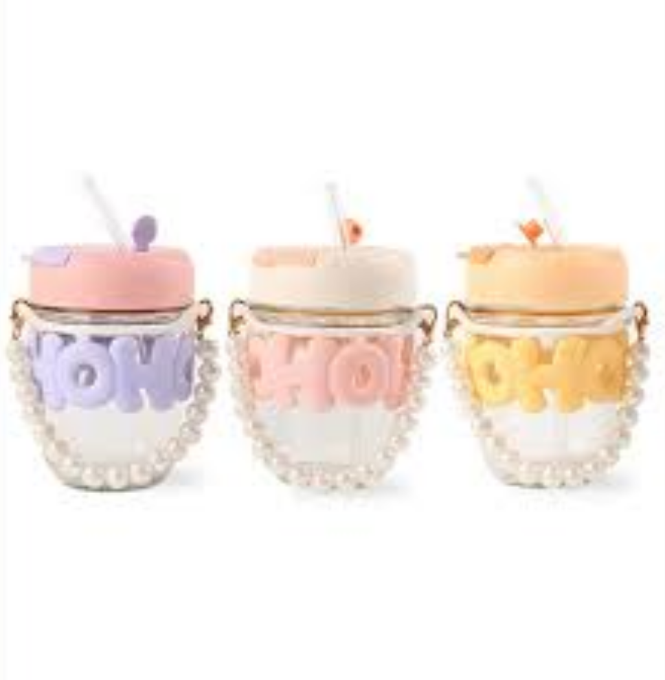 Stay cute and stylish with the Mika cup, the must-have glass sipper with straw, lid and pearl string handle, that’s perfect for kids, tweens, and teens who love to set trends. With its vibrant colors and playful patterns, this aesthetic tumbler makes every sip Instagram-worthy while keeping hydration fun.